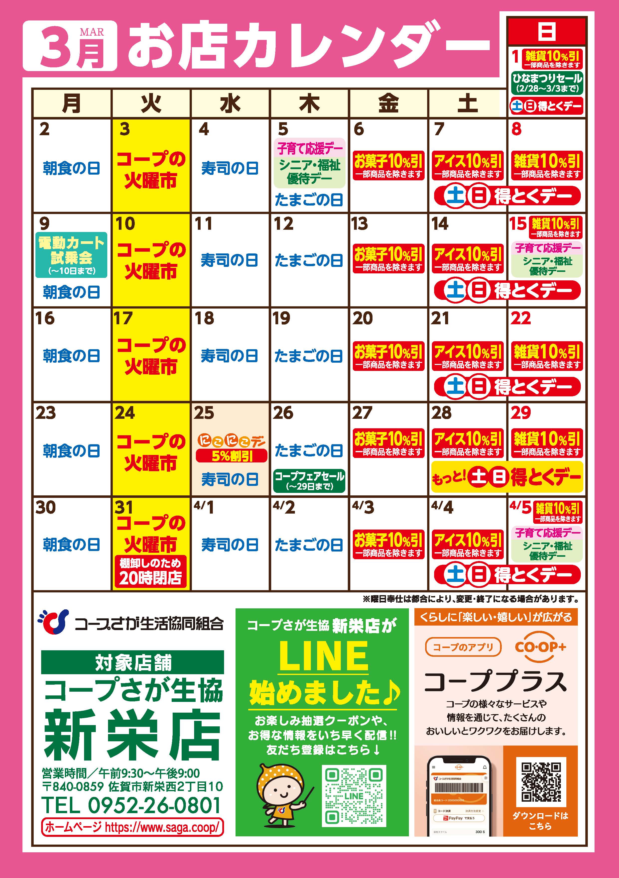 | その他 | 毎月第4週は「コープフェア」! 「5」がつく日は新栄店にGO!GO!GO! |